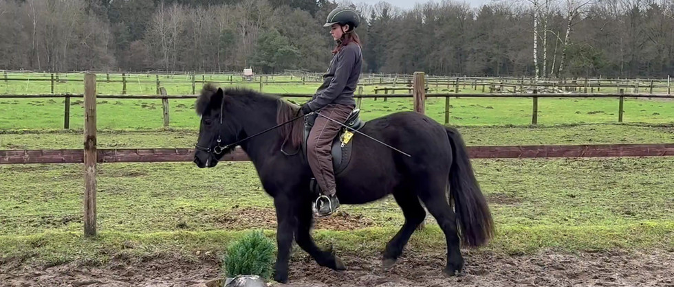 Momentan wird sie regelmäßig von zwei jungen Damen (13- und 17jährig) geritten. Sie zeigt keine Unarten wie Buckeln, Steigen, Umdrehen, Stehenbleiben, Treten, Weben oder Kopfschlagen. Es wäre auch denkbar, dass sie von Anfänger*innen geritten wird, allerdings sollten diese sich Unterstützung suchen. Sie ist auf allen vier Hufen beschlagen, schmiede- und verladefromm. Sie wird meist auf Trense geritten, lässt sich aber auch gebisslos und mit dem Halsring im Schritt, Trab und Galopp reiten.
